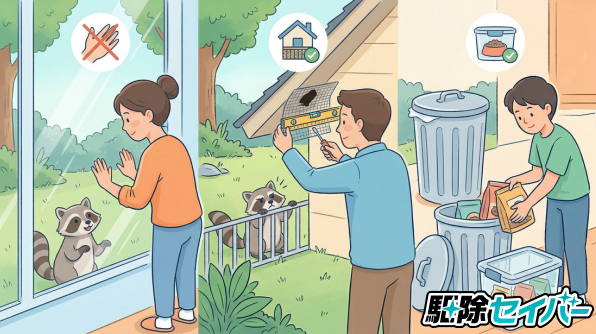 狂犬病をはじめとする感染症から身を守るには、アライグマとの接触を避けることが重要です。自宅の周辺環境を整えることで、被害や感染のリスクは大きく下げられます。